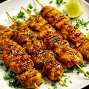 Easy Pan Grilled Chicken Kebab|Grilled Chicken Kebab|Pan Grilled Chicken Skewers|Chicken Kebab On The Pan|Grilled Chicken Dish|Easy Chicken Kebab Recipe Components for Grilled Chicken Kebab: ( Tsp-Teaspoon; Tbsp-Tablespoon). – Boneless Chicken – 300 gms cut into 1.5 inch tikka pieces. Marinade:. – Turmeric powder-1/ 4 tsp. – Red Chilli Powder- 1 tsp. – Kashmiri Chilli Powder-1/ 2 tsp. – Cumin powder-1/ 4 tsp. – Garam Masala powder- 1/2 tsp. – Salt- 1/2 tsp + pinch. – Lemon juice-1…